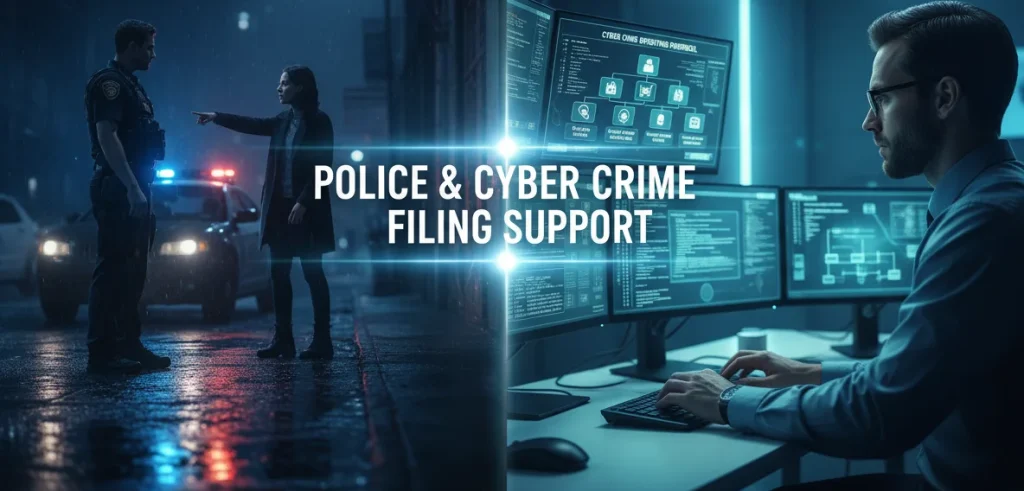 We assist you in filing complaints with local police stations and the National Cyber Crime Portal. Our support ensures that the complaint is submitted correctly and with proper documentation, reducing the risk of rejection or delay.